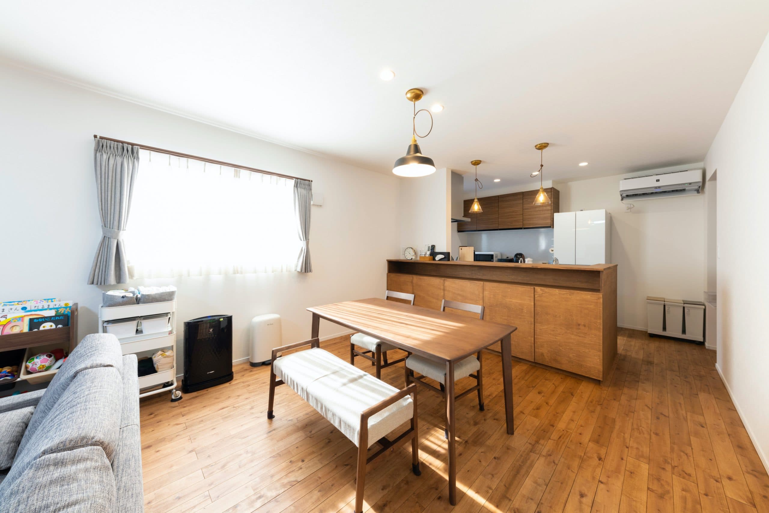 家族が集まるリビングにこだわり家事もしやすい間取りになってます。ご主人のこだわりは収納。