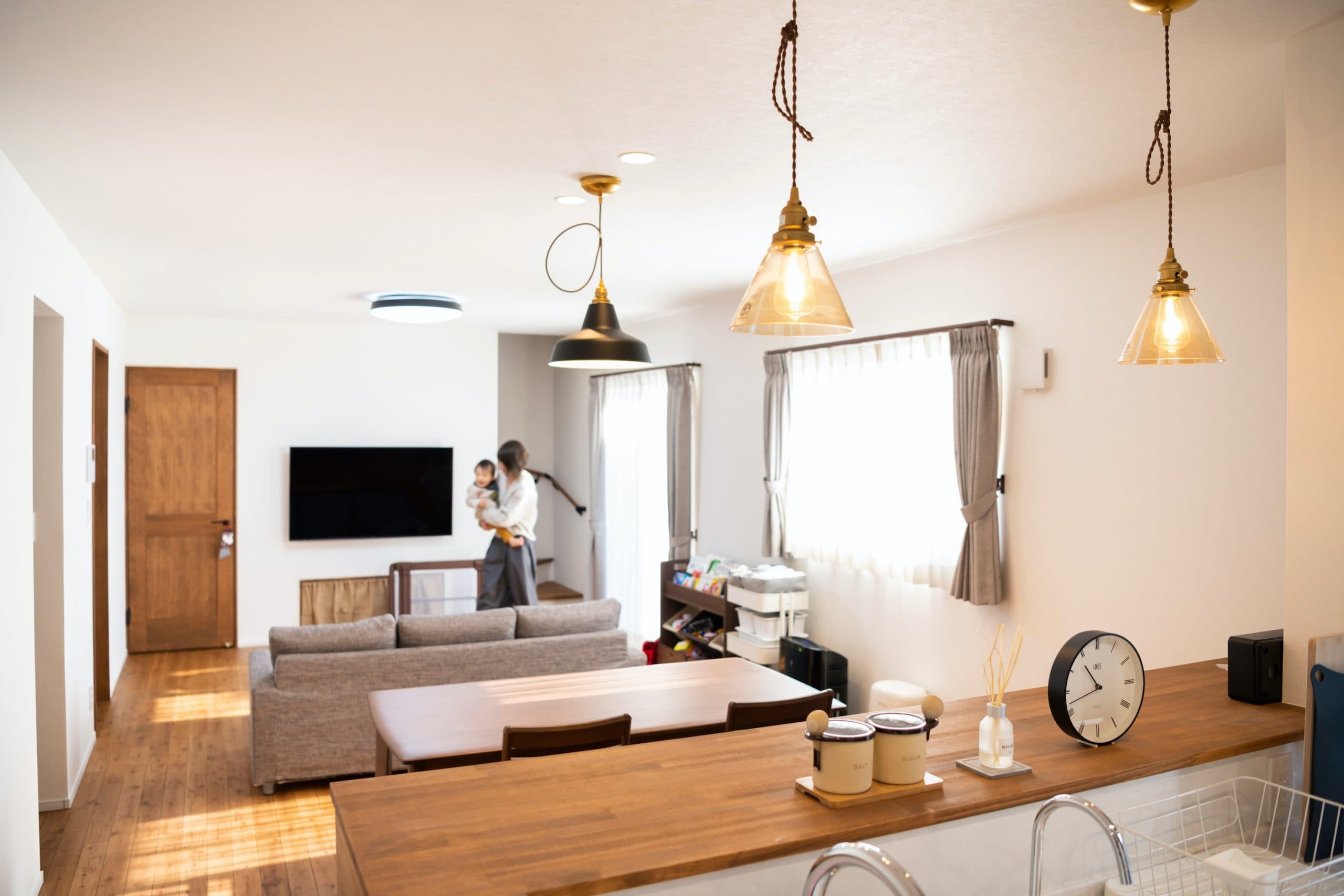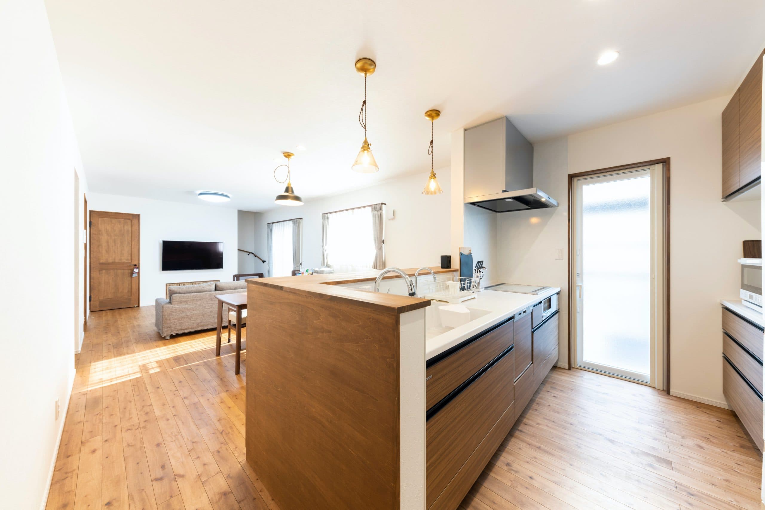 奥様のこだわりはキッチン。家事はもちろんお子様の顔も見れるよう対面キッチンにしました。