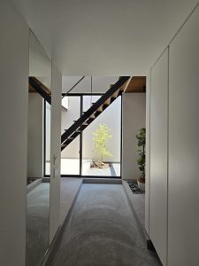私の個人的お気に入りポイントは、玄関を入ると続く土間と、その先に広がる中庭の景色。